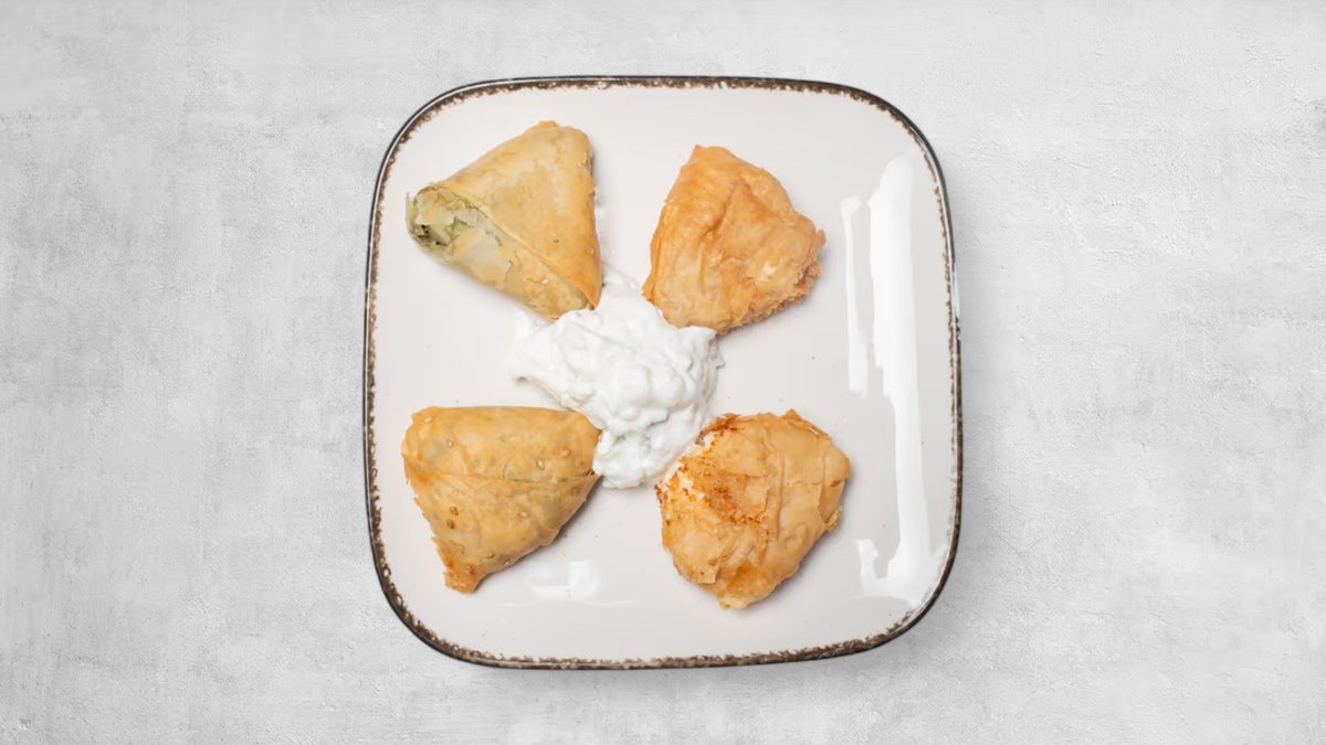 2x filled puff pastry pockets with spinach 2x filled puff pastry pockets with sheep cheese and tzatziki