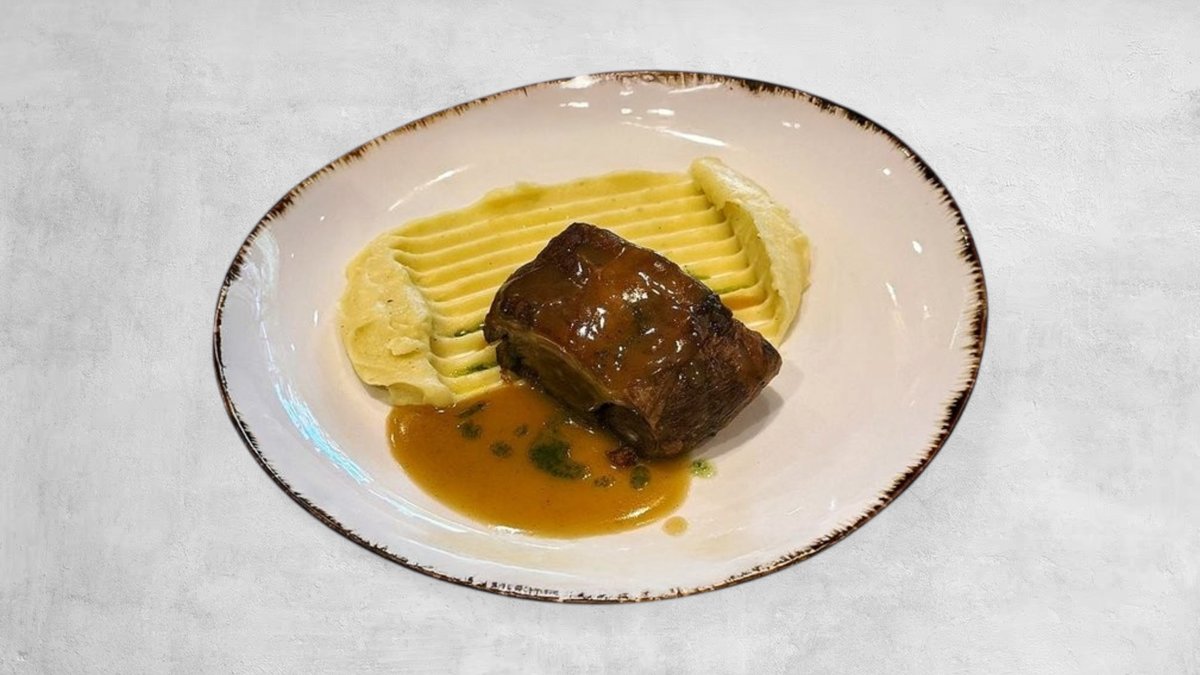 Slow-cooked lamb shoulder, 5 hours in the oven at 120 degrees, traditionally prepared with fresh herbs in a delicate white wine and thyme sauce, served with mashed potatoes Contains alcohol, not suitable for children and pregnant women