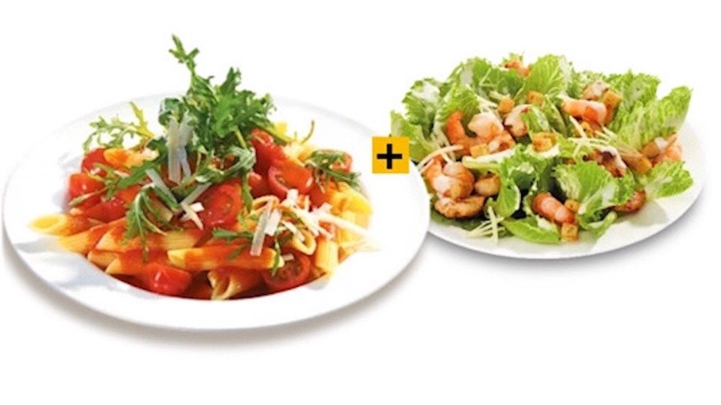 1x pasta (L) with a type of noodle 1x salad 1x dressing of your choice