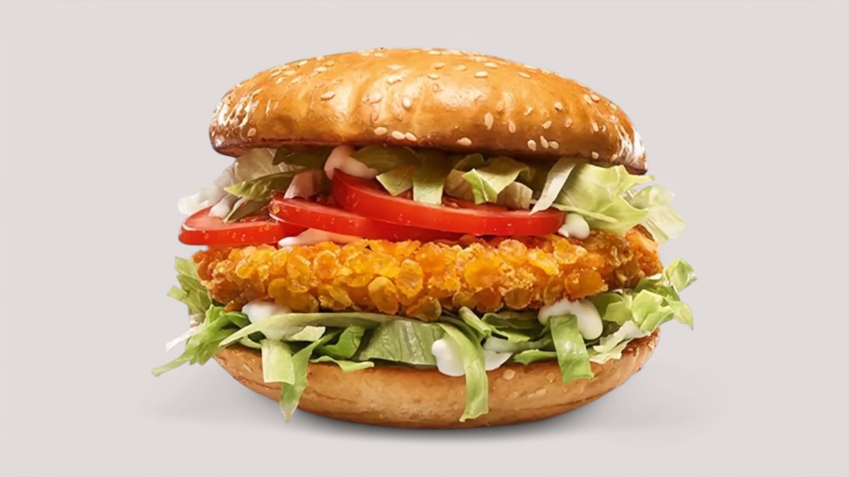 with crispy patty, tomatoes, lettuce, sesame bun and mayonnaise