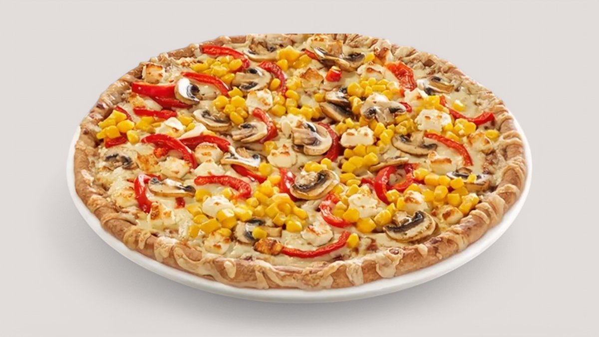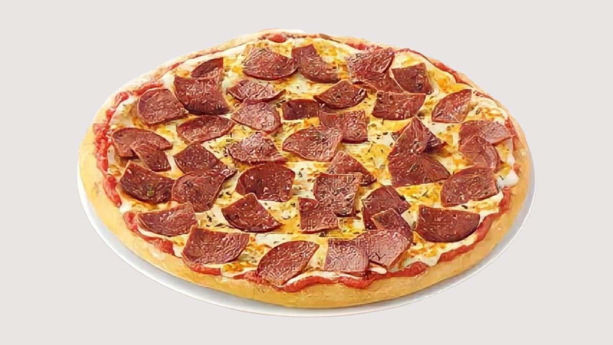 with a fluffy pastry base, spicy tomato sauce and vegan melt in your mouth Gouda cheese, served in a size of your choice