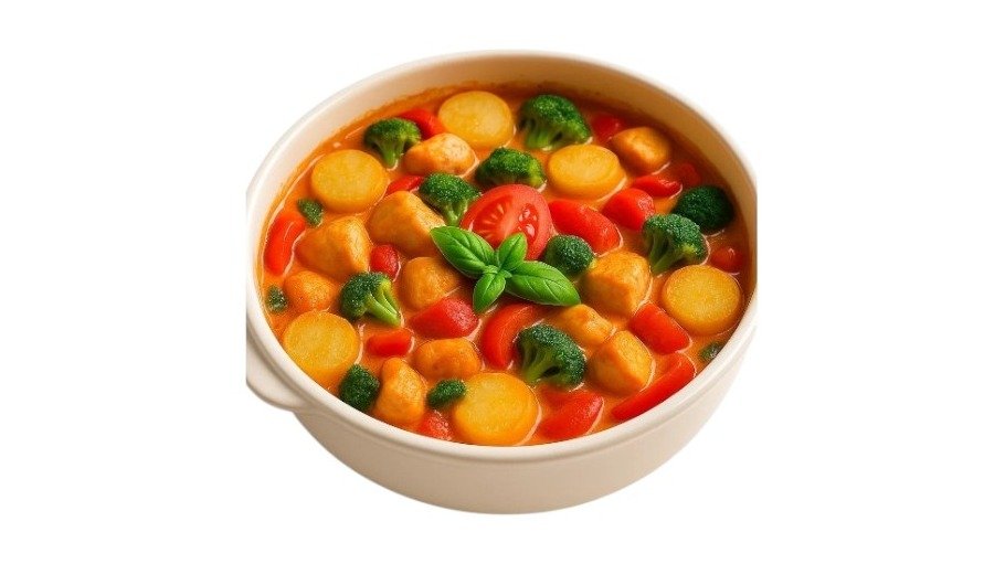 Potato Casserole with Bell Peppers, Chicken, and Tomato Cream Sauce
