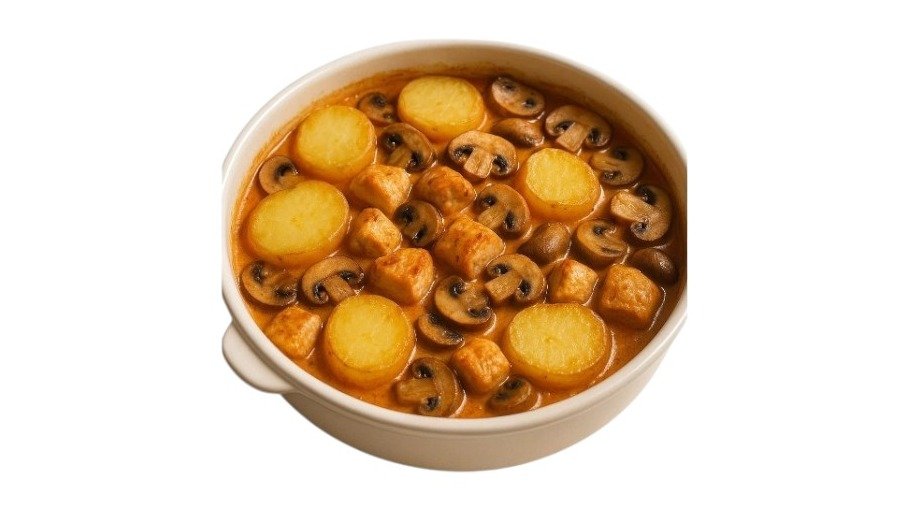Potato Casserole with Champignons and Tomato Cream Sauce