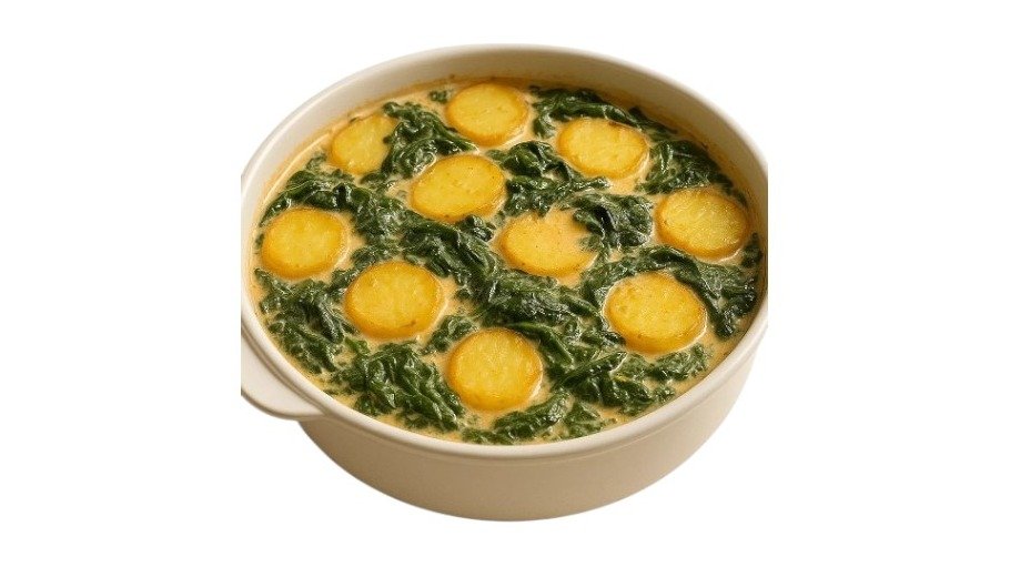 Potato Casserole with Leaf Spinach and Cream Sauce