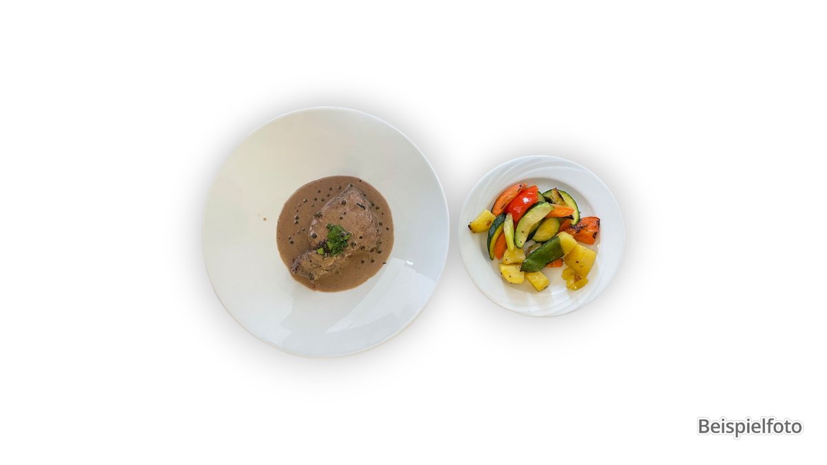 fillet steak in pepper cream sauce and croquettes