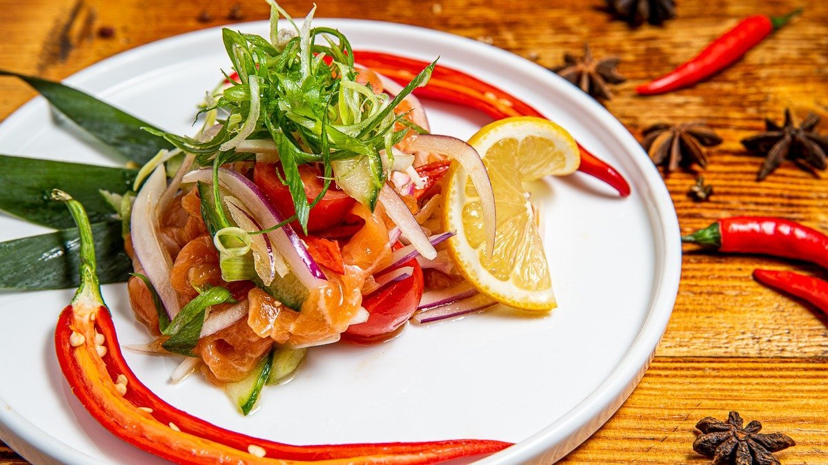 fried kimchi with pork belly, topped with Sichuan mountain pepper