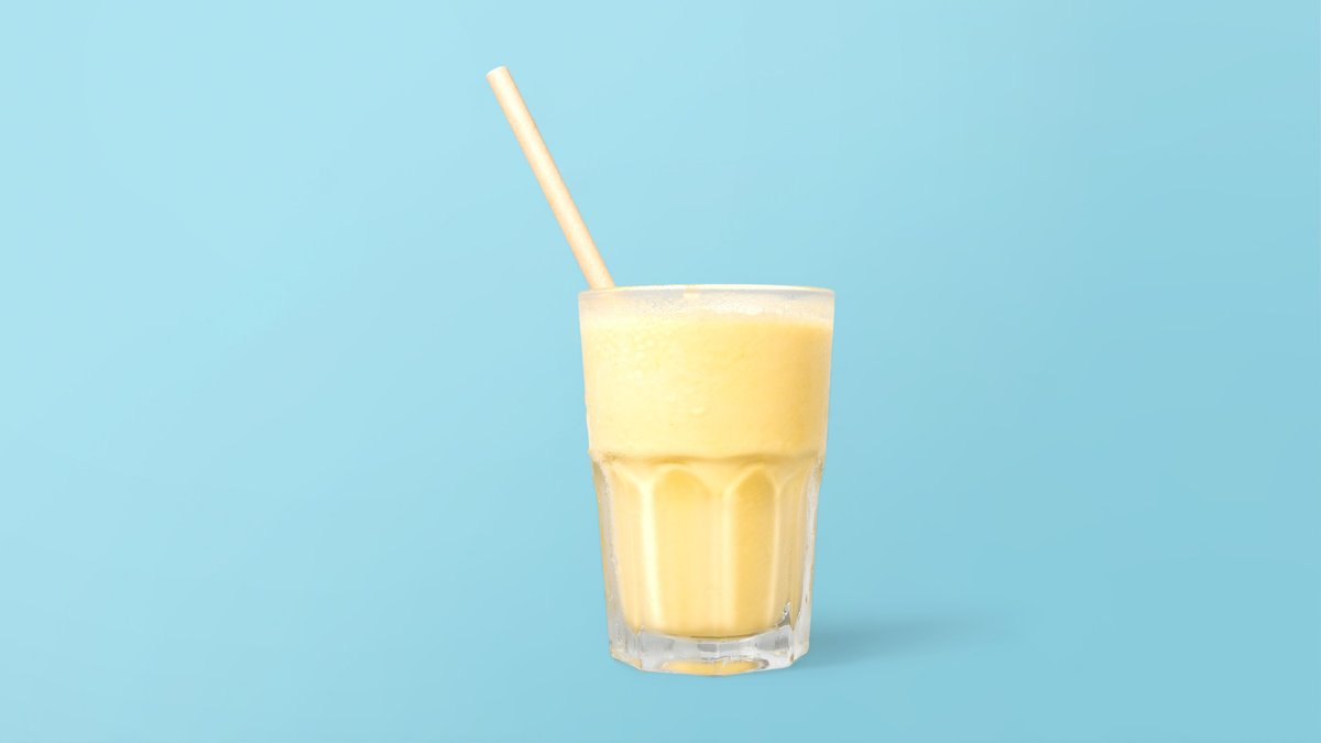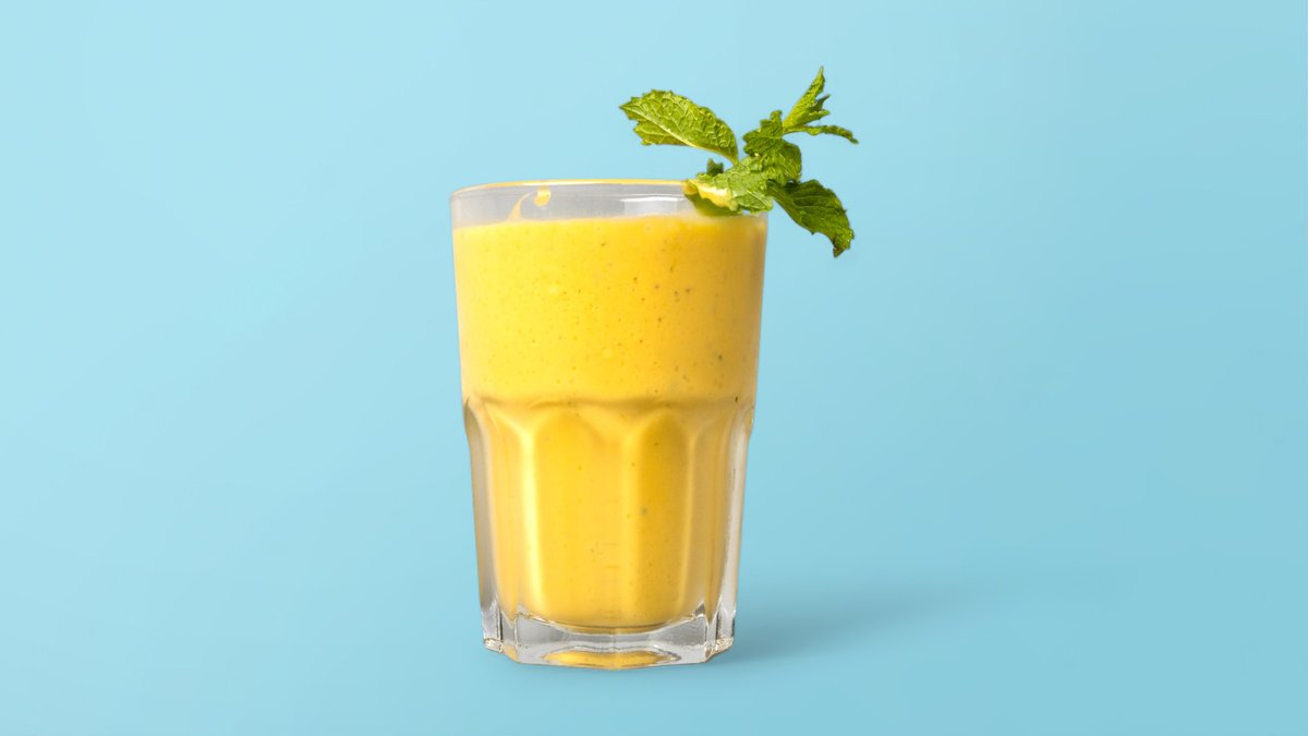 Indisches Joghurtgetränk mit pürierter Mango, süß und erfrischend.
