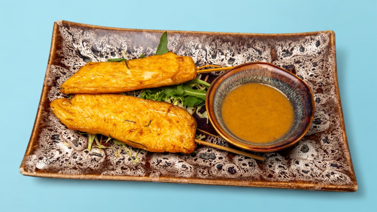 gegrillte Hähnchenspieße mit Erdnuss-Dip