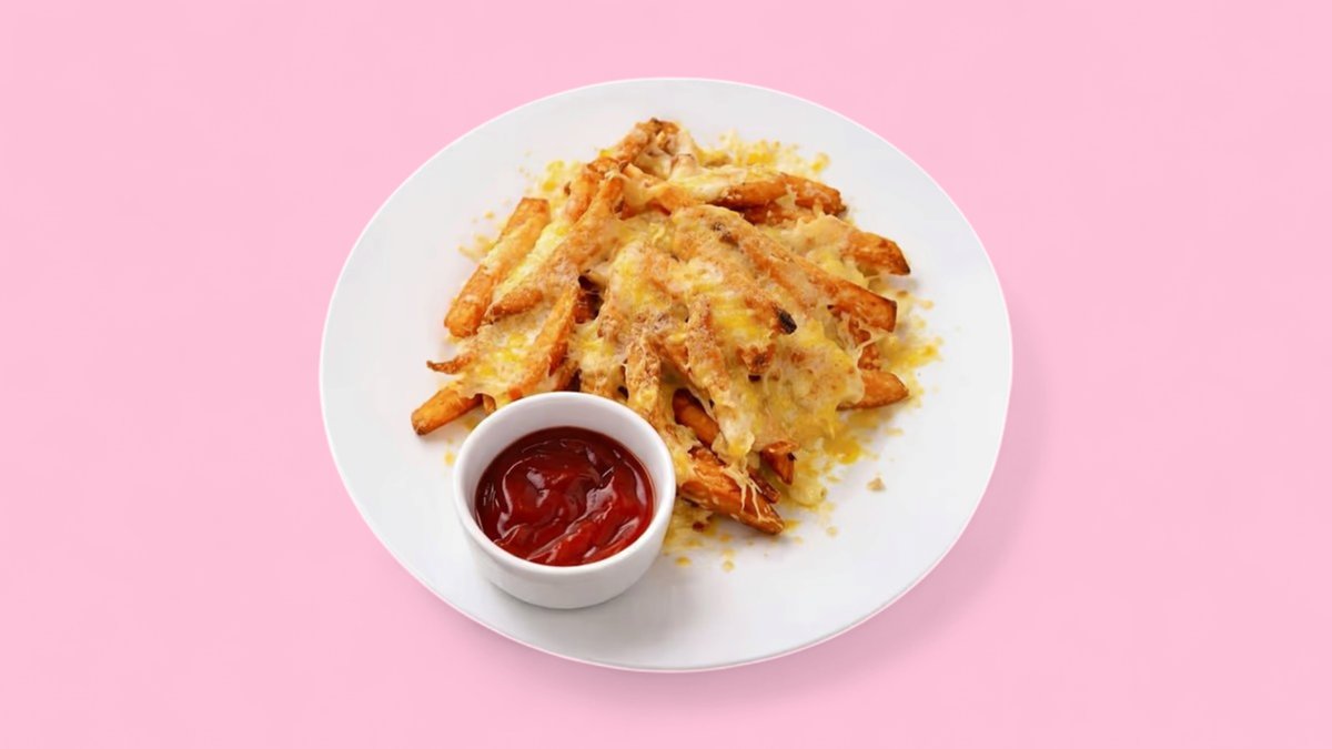 Suß Pommes mit Käse uberbacken