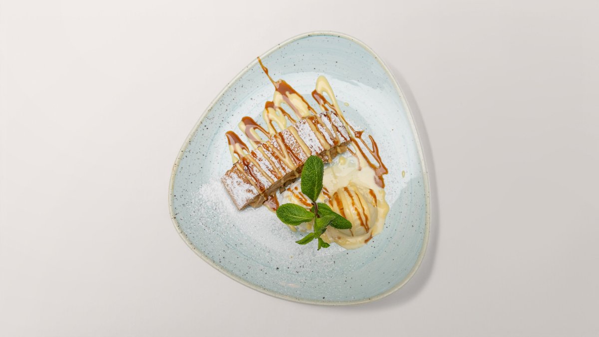 the dish was prepared with chocolate and may contain traces of (various) nuts with vanilla ice cream and cream