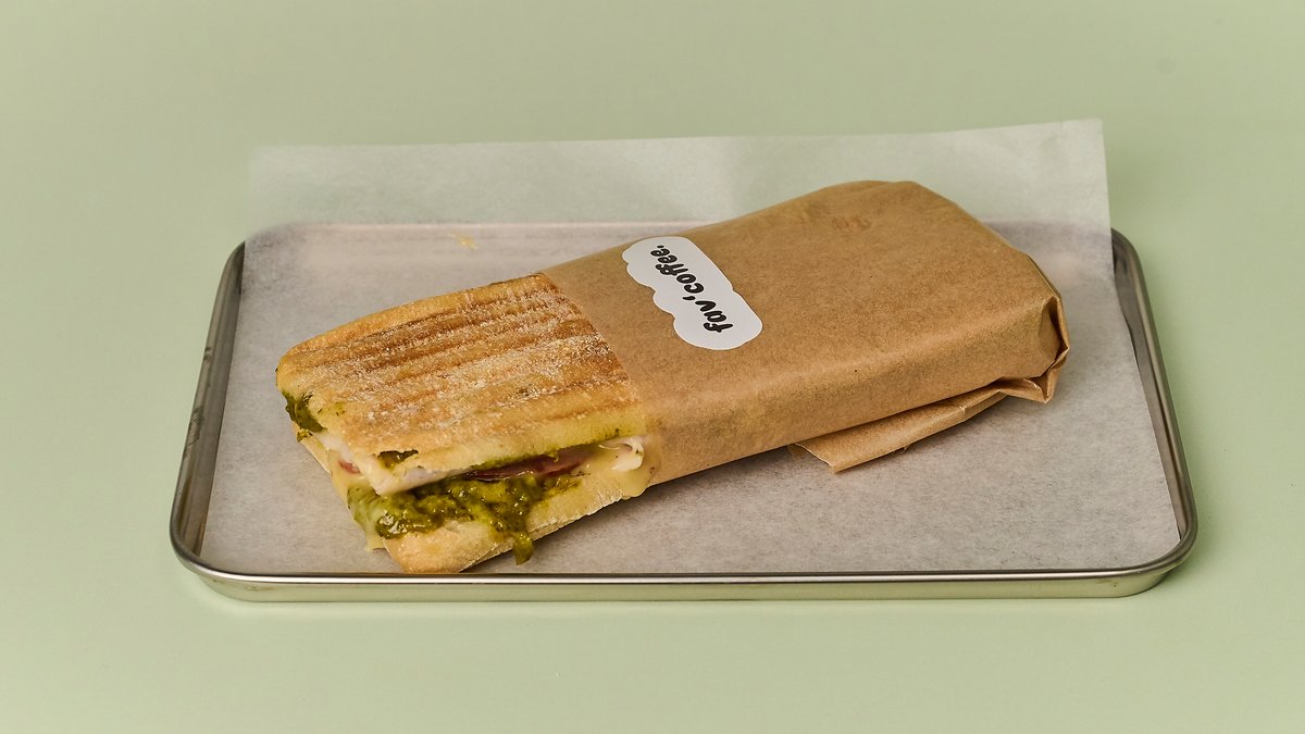mit Putenbrust, grünem Pesto und Mozzarella