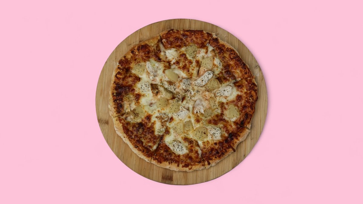 Khachapuri-Pizza mit Hähnchen und Ananas