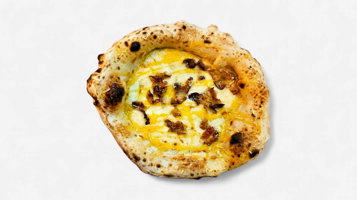 mit Mozzarella Fior di Latte, Guanciale und Eigelbcreme