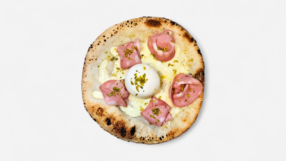 mit Mozzarella Fior di Latte, Burrata, Mortadella vom Schwein und Pistazien