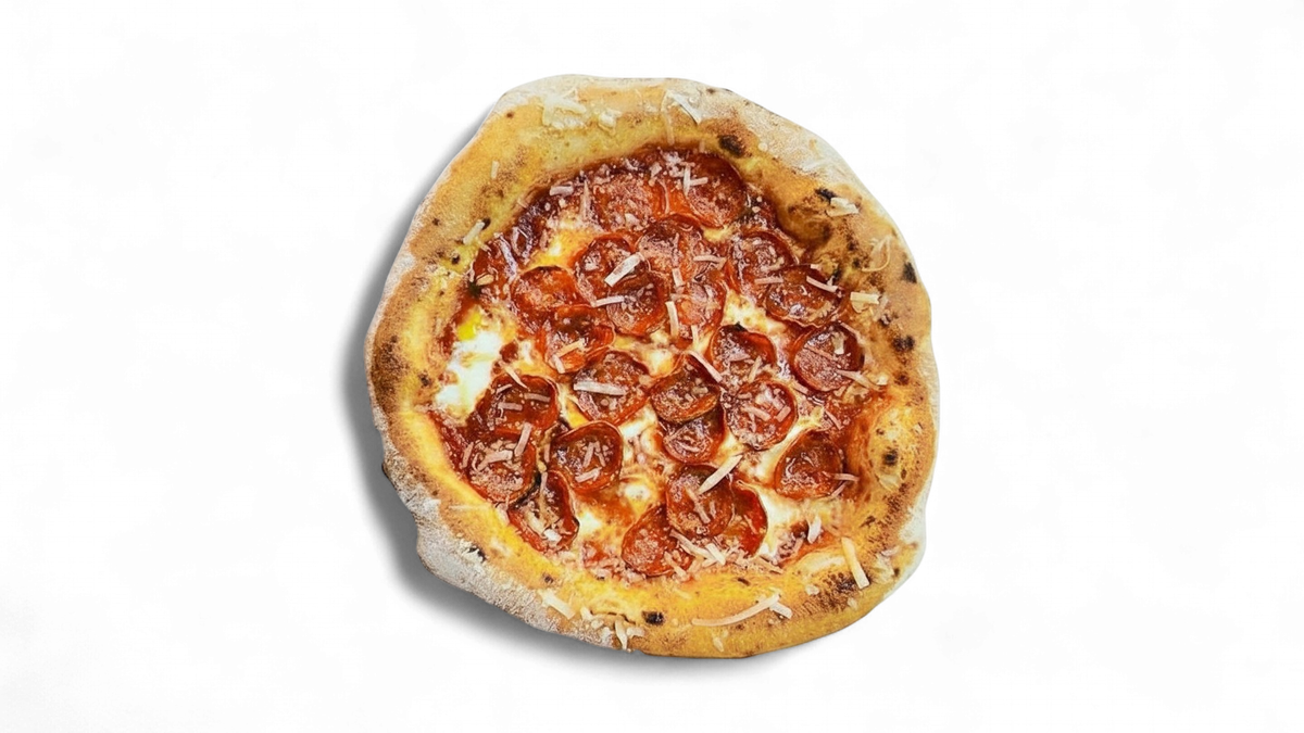 mit San Marzano D.O.P Tomatensoße, Mozzarella Fior di Latte, Peperoni und Parmesan