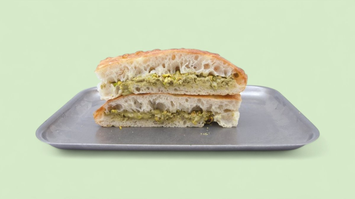 Büffelmozzarella, hausgemachtes Pesto, Rucola und feines Olivenöl – der Caprese-Favorit im Focaccia-Style.