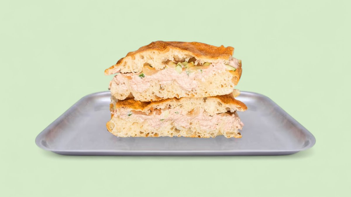 Hausgemachtes Focaccia mit zarter Putenbrust, cremigem Robiola-Frischkäse, eingelegten Oliven, gegrillter Zucchini und frischem Rucola. Herzhaft, frisch und einfach unwiderstehlich.