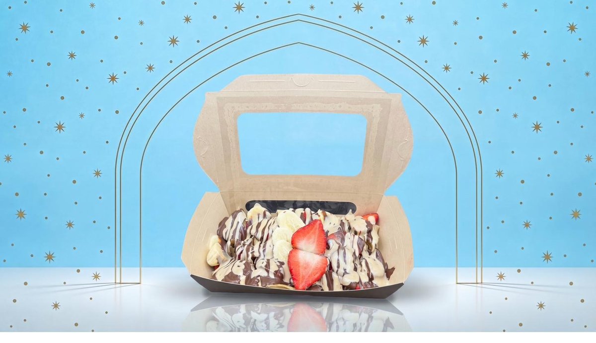 1x Dubai Crêpes, 1x Manga Delive, 1x Frez Kunafa, 1x Mari Kunafa, 1x Mari Ferz Milchreis, und 1x Lotas Milchreis.