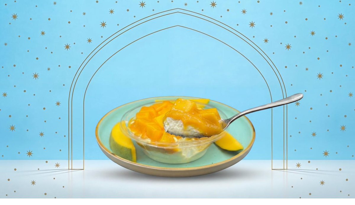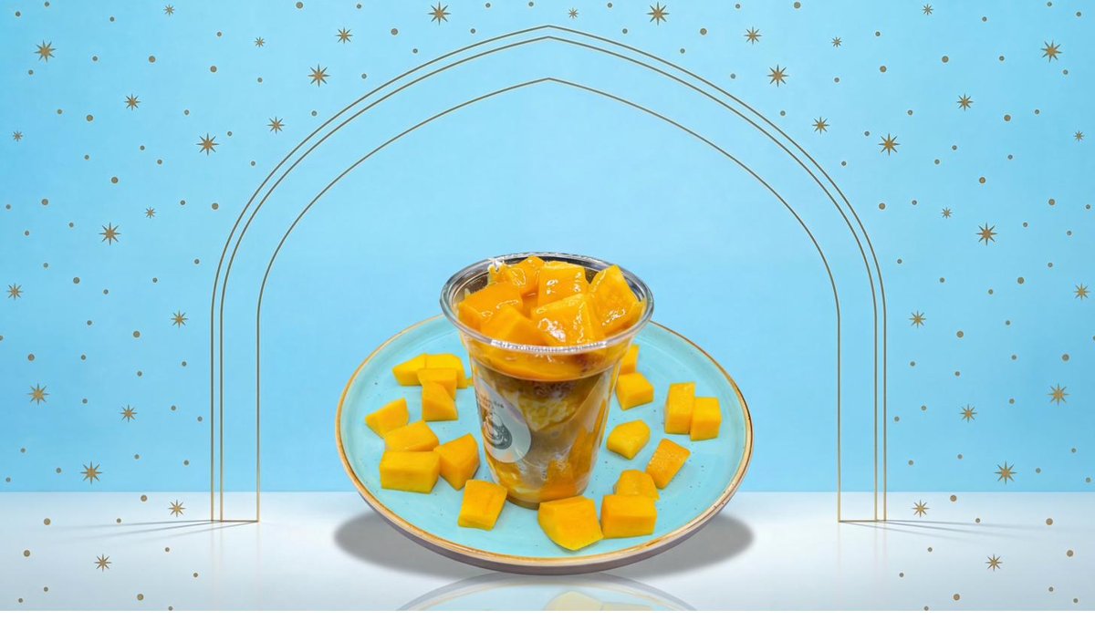 mit Milchreis, MAngo Püree, Kunafa, Mascarpone und Mango