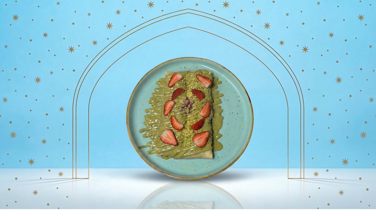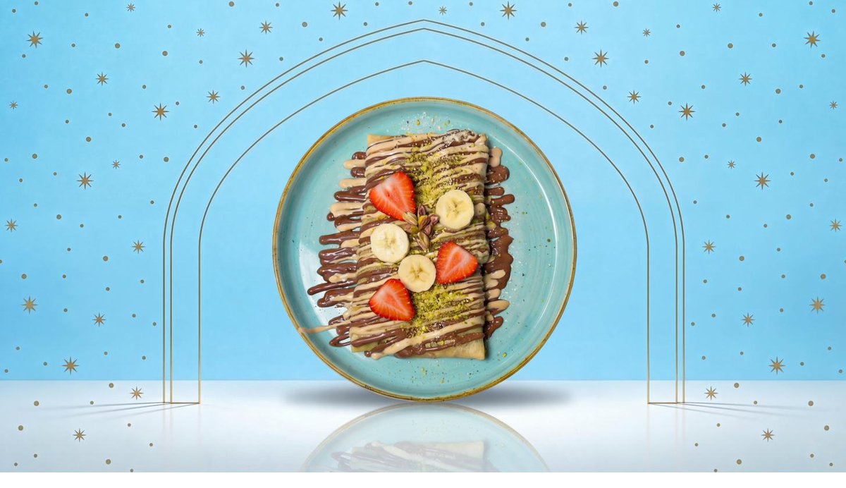 Crepes , Pistazien Sauce , Pistazien , Lotus krümel , Lotus Sauce , Erdbeeren , Banana
