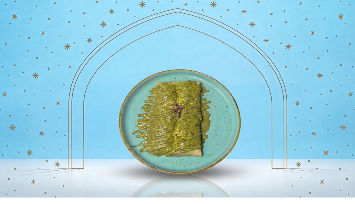 Kunafa , Mascarpone , Pistazien , Lotus Krümel , Pistazien sauce , Lotus Sauce