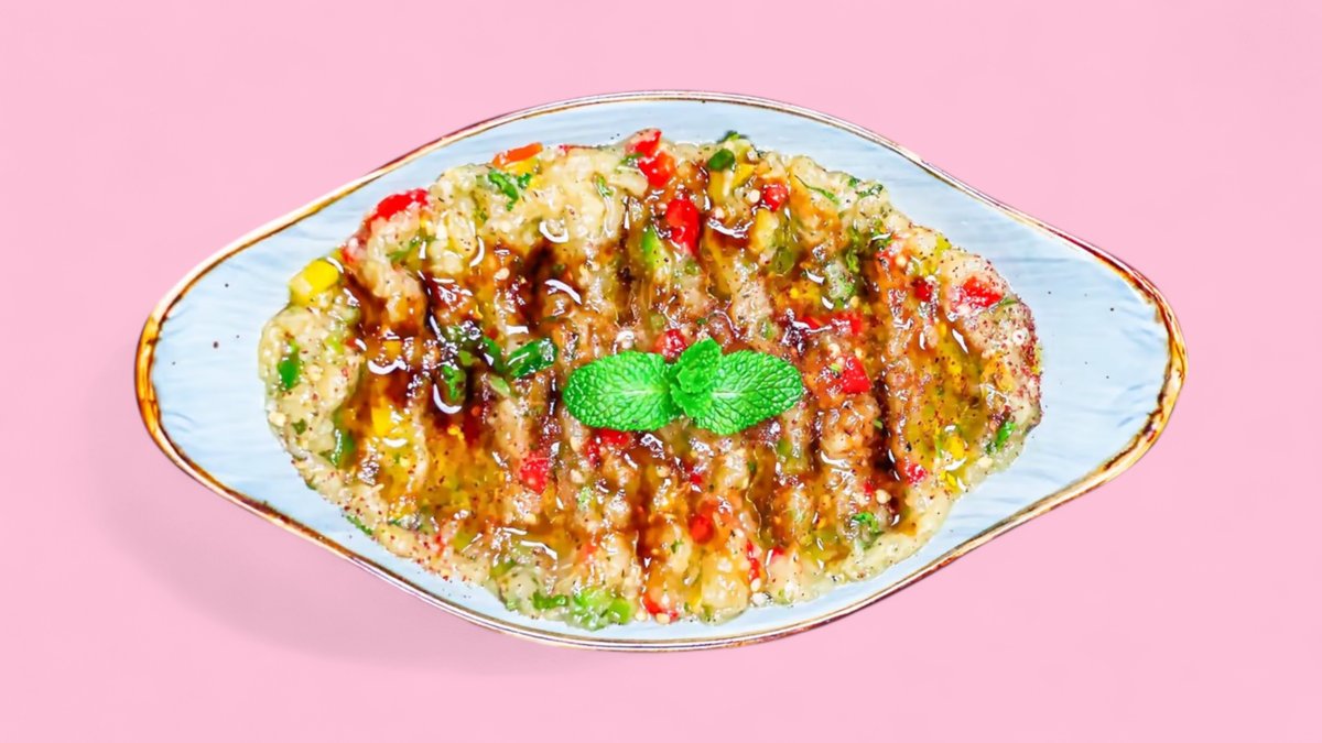 Grilled eggplant pureed with paprika, parsley, mint, lemon juice and garlic – fresh, aromatic and slightly smoky.