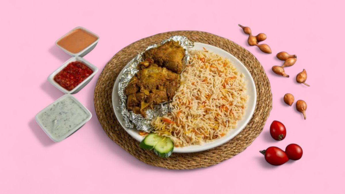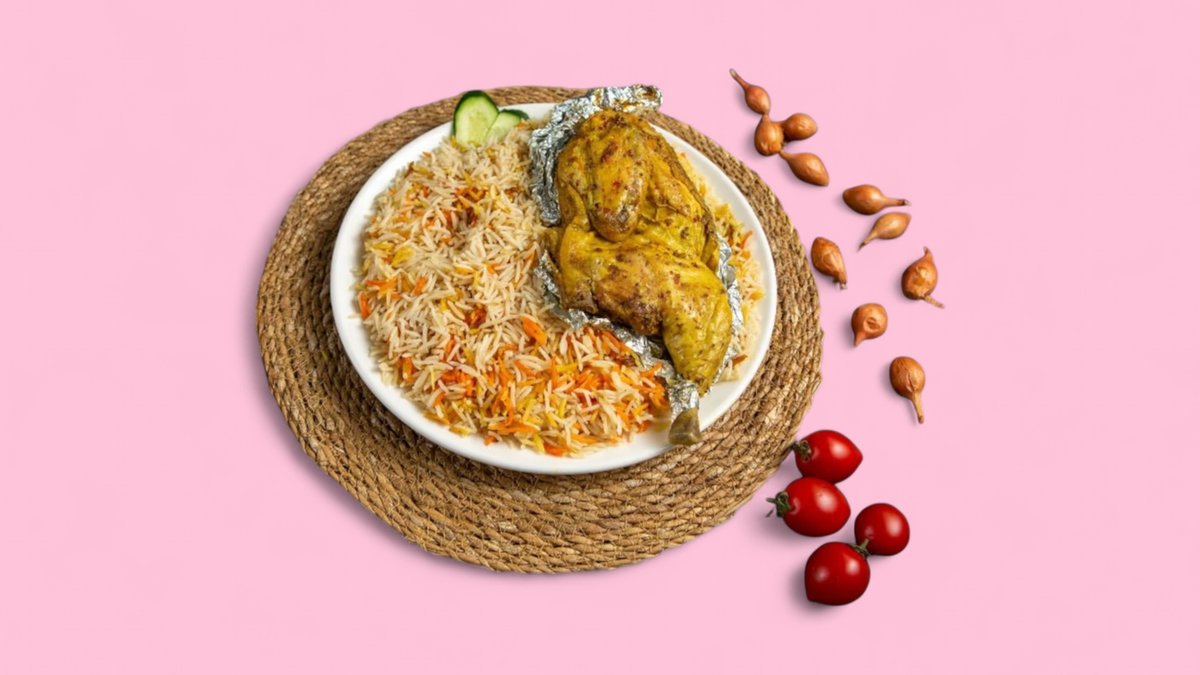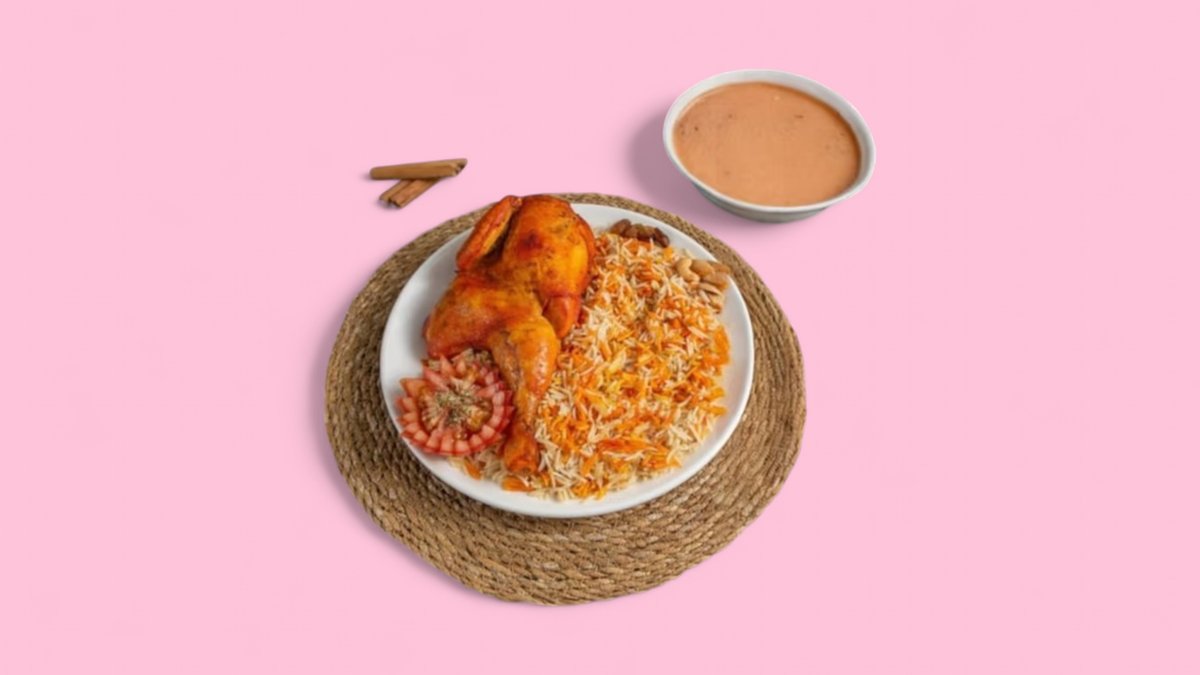 Tender chicken, cooked using a special pressure cooking method that makes it tender and full of rich flavors. Served with rice and perfectly balanced spices that complement the chicken and impart a unique taste. A delicious, satisfying meal that combines tradition and flavor.