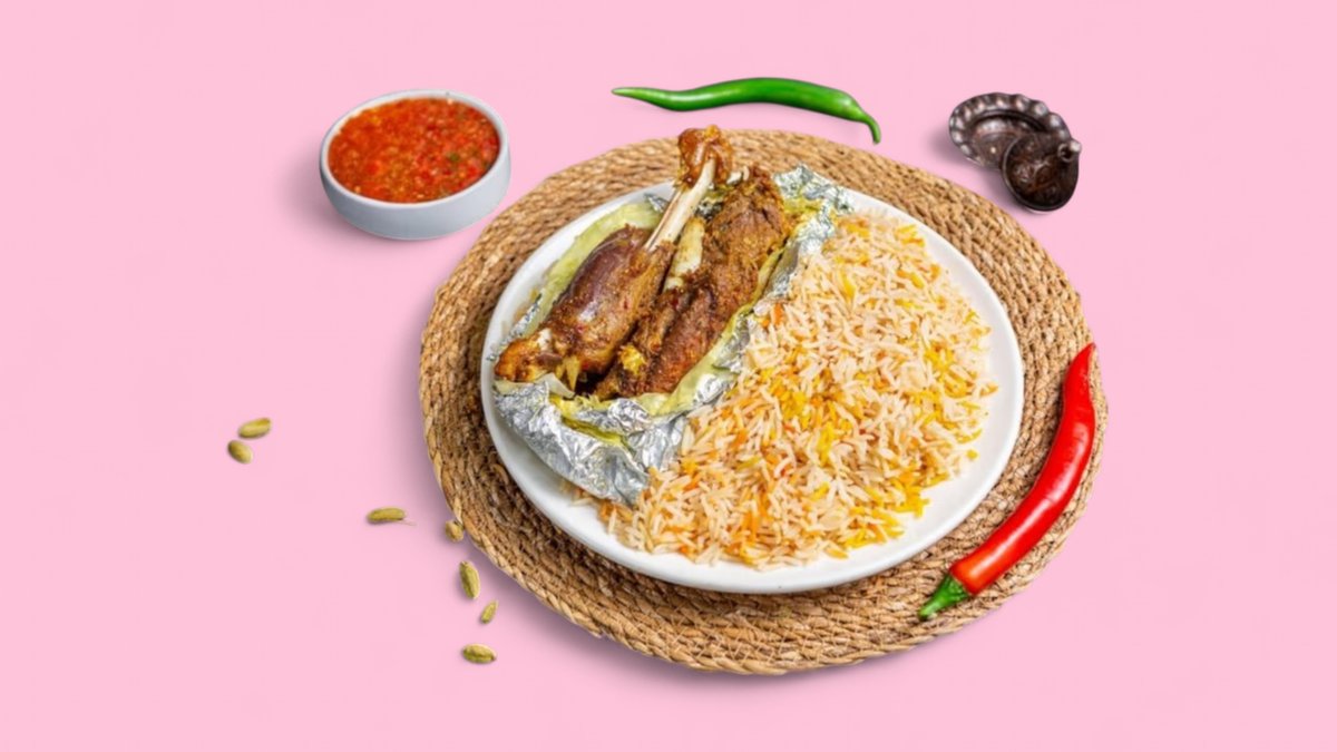 Succulent lamb, seasoned, lightly grilled, and then oven-cooked in aluminum foil with butter paper. The enclosed cooking process ensures the meat remains particularly tender. When serving, the foil is opened directly at the table—a sensory experience. Served with aromatic mandi rice.