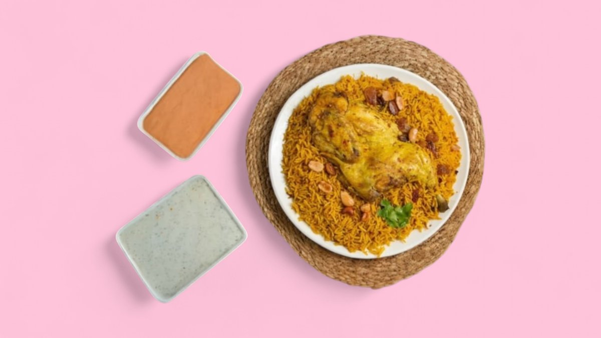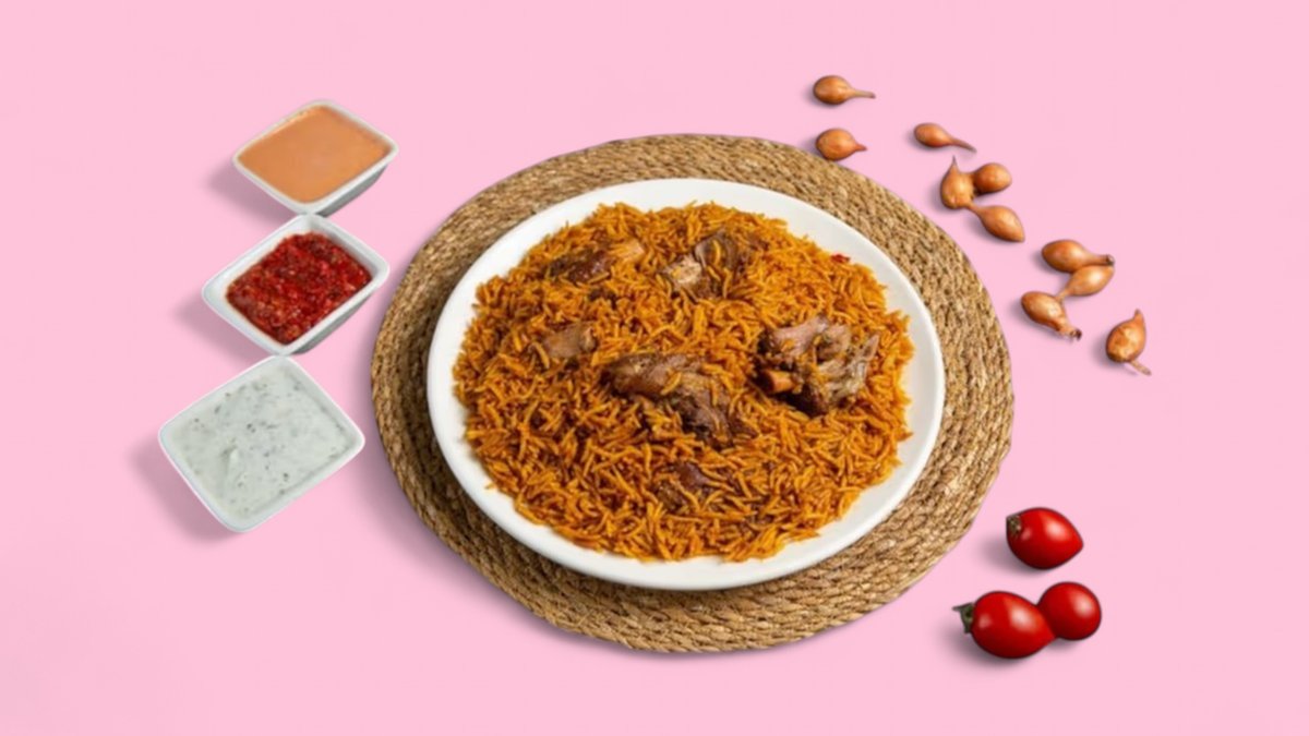Tender chicken, gently cooked with a delicate Mandi spice blend of cumin, turmeric, and cardamom. The meat remains juicy and fully absorbs the aroma of the spices. Served on golden Mandi rice, refined with saffron and broth—a Yemeni classic.