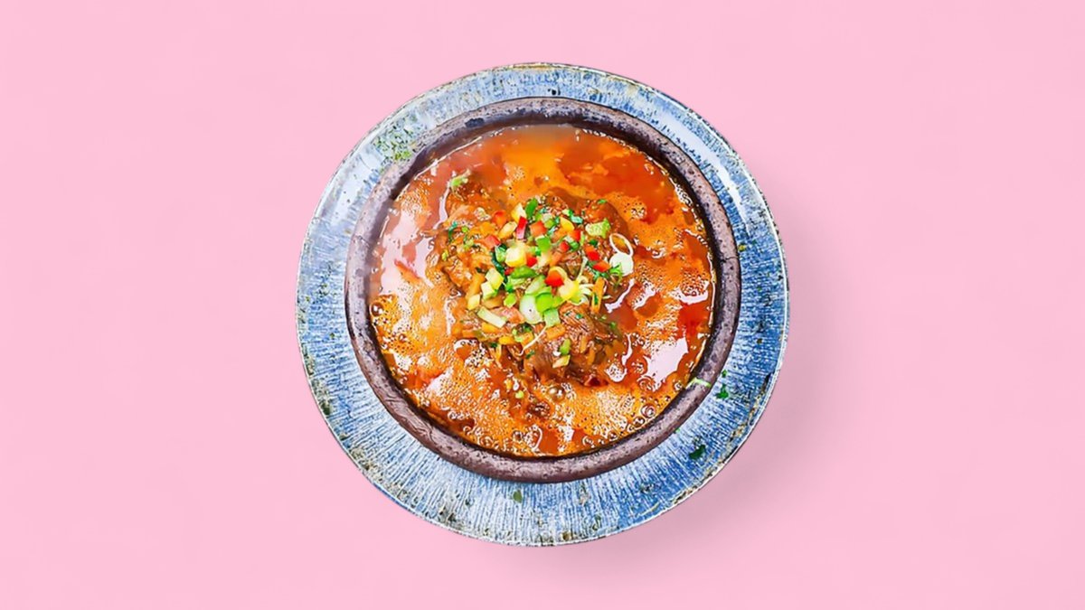 A hearty bean dish with tender pieces of beef, cooked in a spicy broth and served in a clay pot. Served with bread or rice.