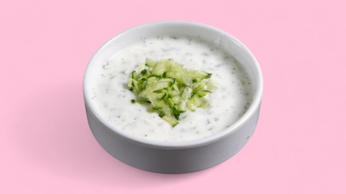 Creamy yogurt with finely chopped cucumbers and fresh mint – cooling and aromatic.