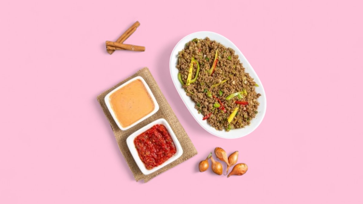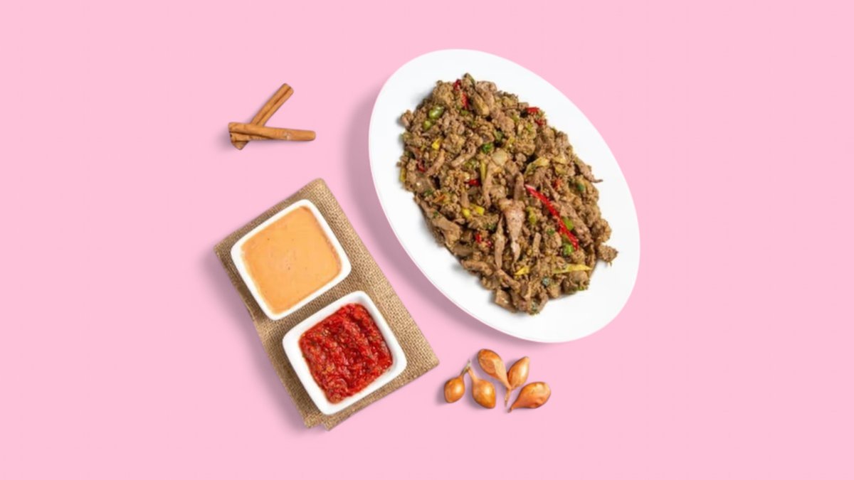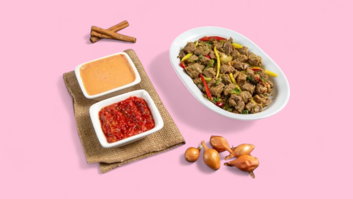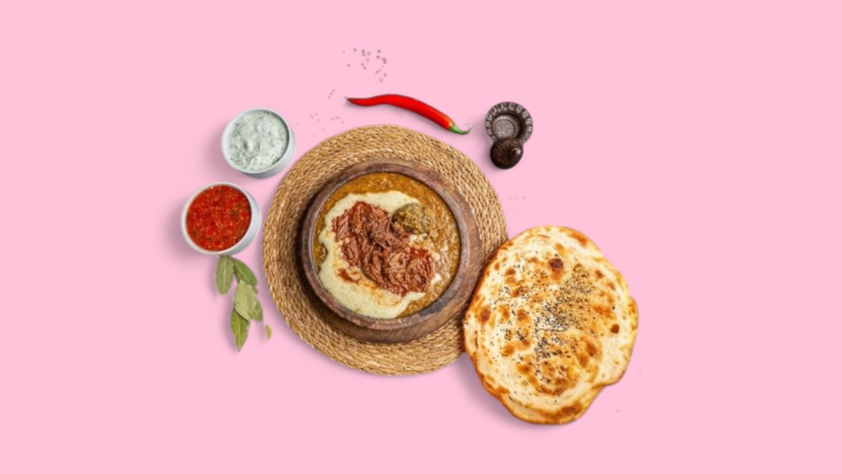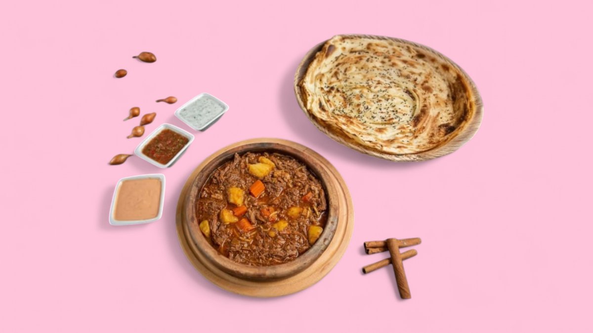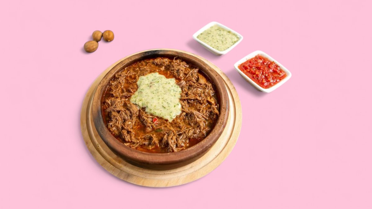 Tenderly cooked beef in a spicy tomato and garlic sauce, traditionally served in a Haradah stone pot and accompanied by hulba. Served with bread or rice—a hearty and typical dish.