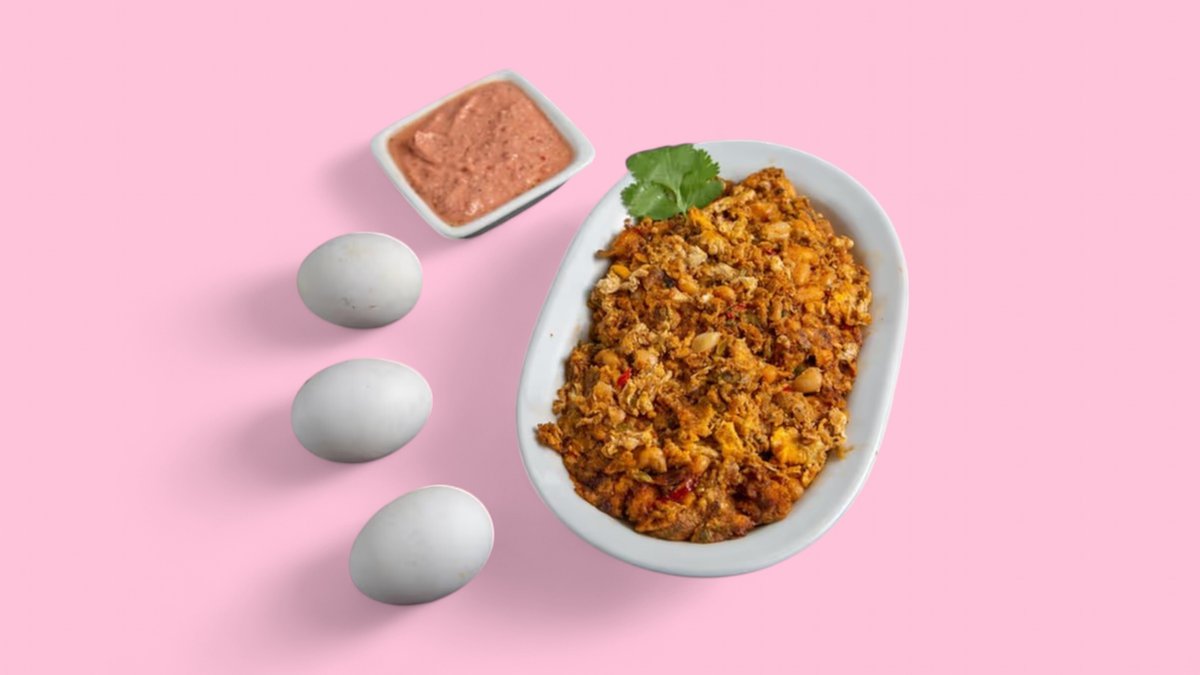 Freshly beaten eggs, fried with tomatoes, onions, peppers, spring onions, coriander and spices – simple, hearty and particularly aromatic.