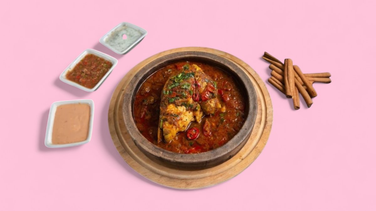 A flavorful dish with tuna cooked in a watery tomato paste sauce with onions, leeks, sweet bell peppers, garlic, cilantro, potatoes, carrots, eggplant, and zucchini. Served in a traditional clay pot with either bread or rice, this dish is a truly delicious dish.