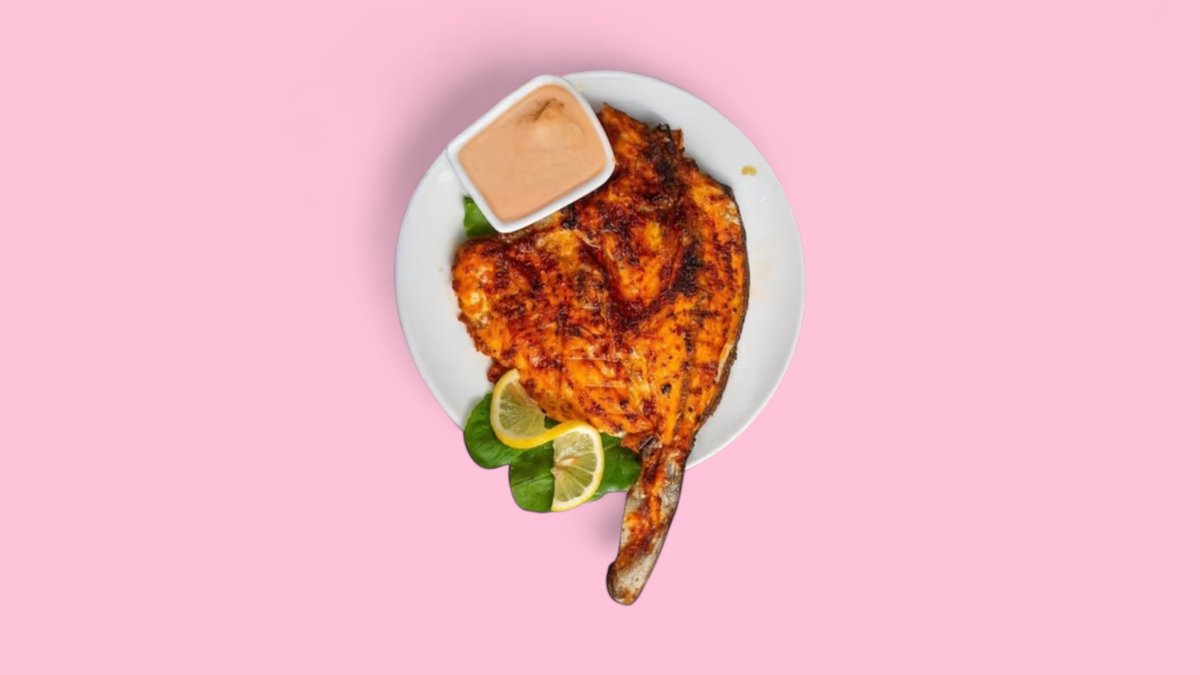 Dorado fish, rubbed with a select blend of spices and grilled for 8–10 minutes. Served with a fresh Hadramaut-style salad and a Sahawiq cheese dip. Guests can choose their own rice or fresh bread. A delicious meal with authentic flavors—a highlight of Hadramaut cuisine.