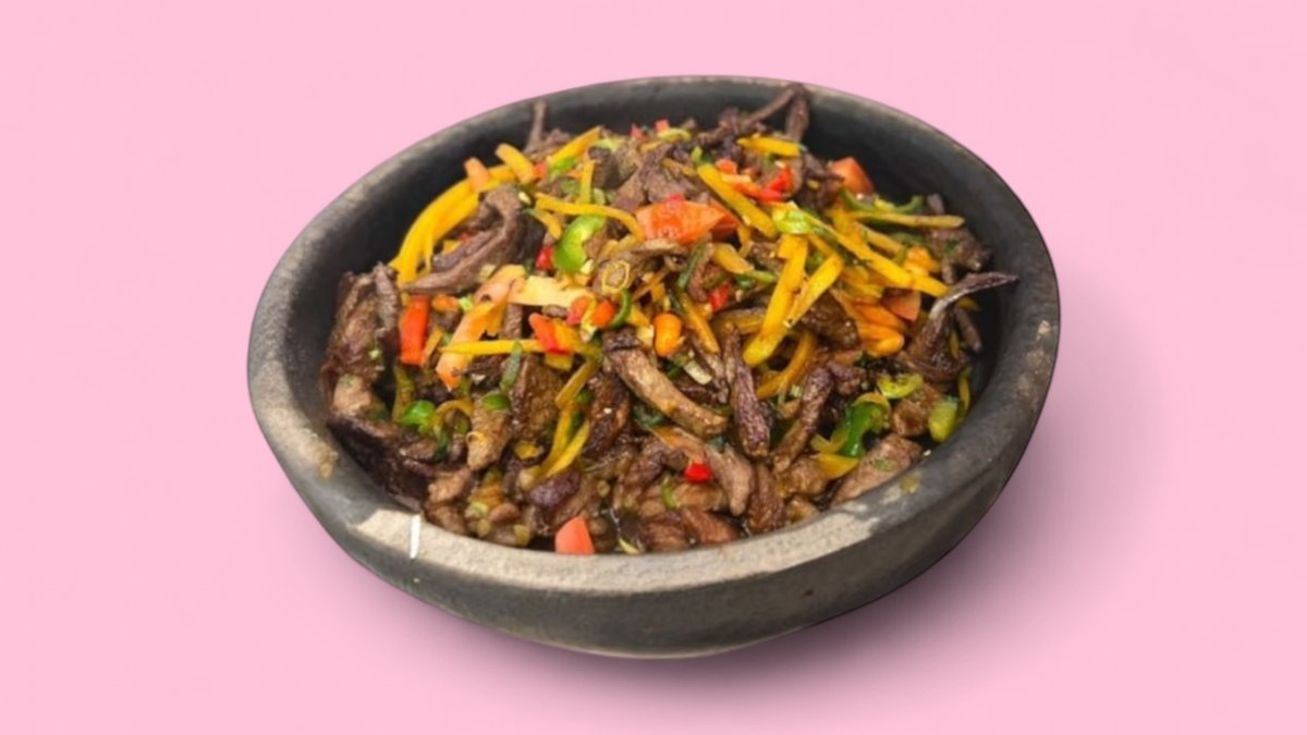 Tender lamb liver, sautéed with onions, bell peppers, chili peppers, garlic, coriander, and kushna. Refined with potatoes, tomatoes, and spring onions – hearty, rustic, and full-flavored.