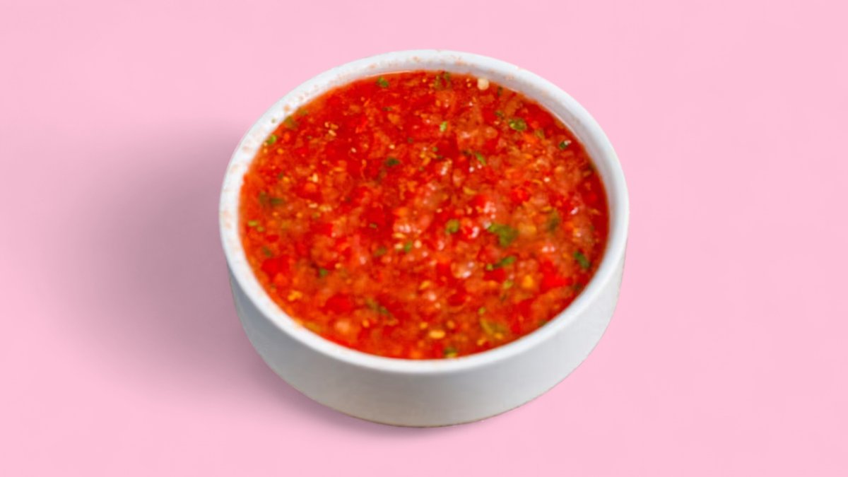 Traditional, homemade Yemeni sauce – fresh, spicy, and aromatic. Tomatoes, chili peppers, garlic, coriander, and mint are coarsely crushed in a mortar and refined with a touch of ground cumin. A staple of Yemeni cuisine.