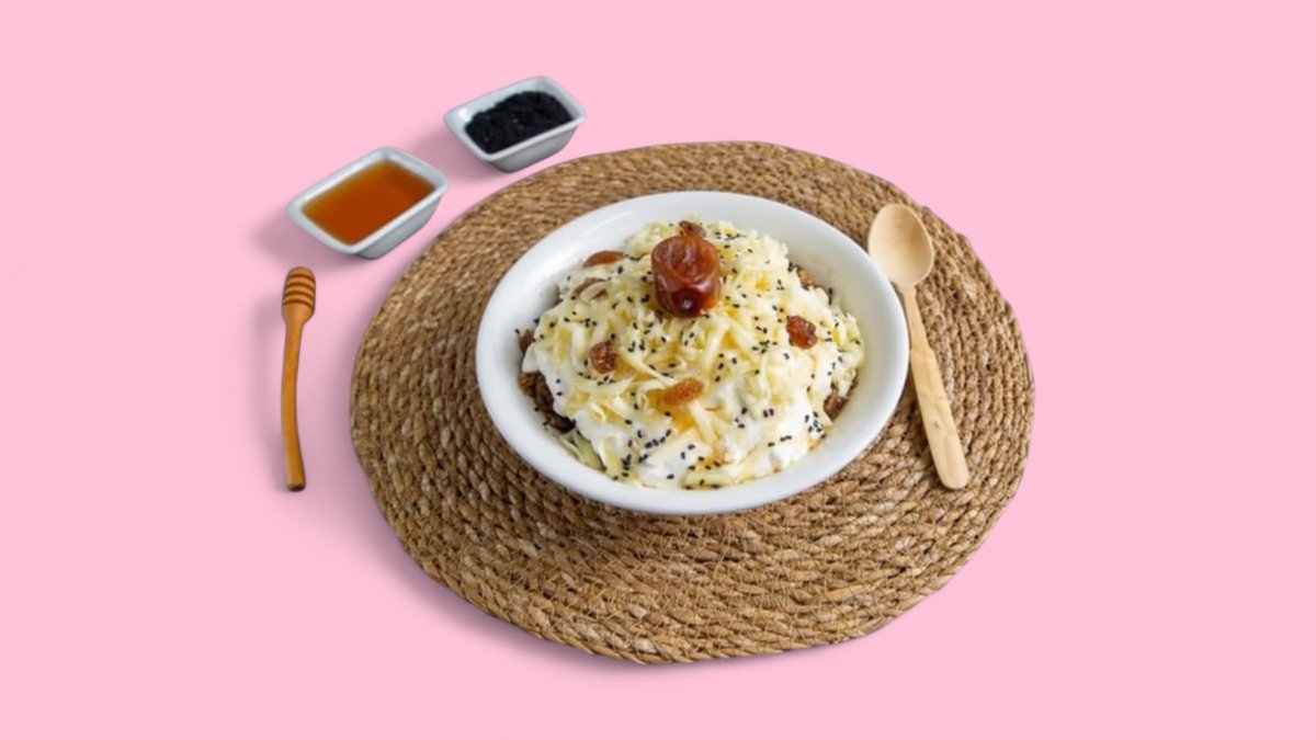Finely crumbled bread tossed with melted butter and chopped dates. Topped with qishta (Yemeni cream), grated cheese, black cumin, and a golden thread of honey—rich, satisfying, and heavenly sweet.