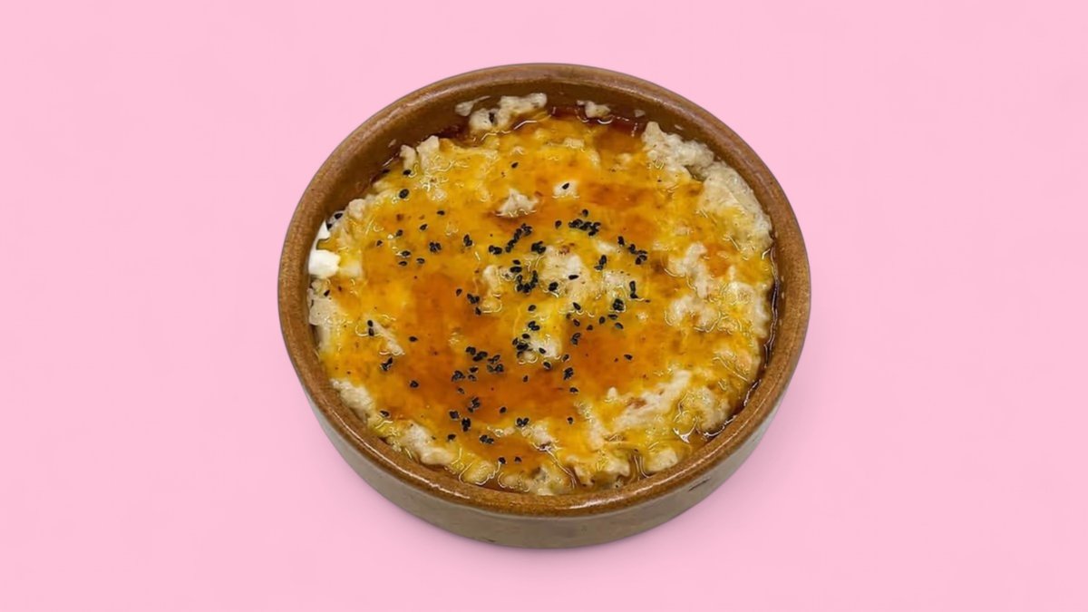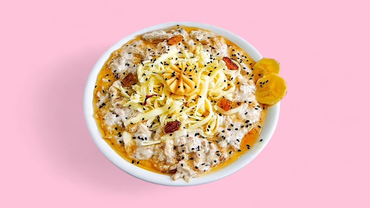 Chopped bread mixed with ripe bananas, qishta (Yemeni cream), and milk. Topped with grated cheese, black cumin, and a dash of honey—a warm, sweet classic from Hadramaut.