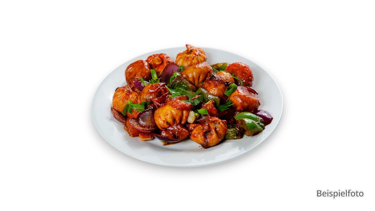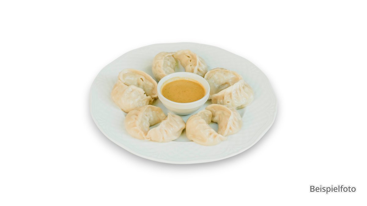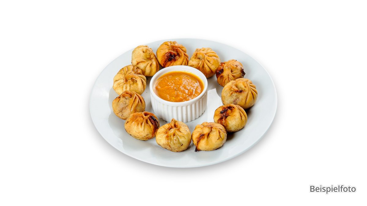 2 pieces filled dumplings with peas, potatoes and cashew nuts