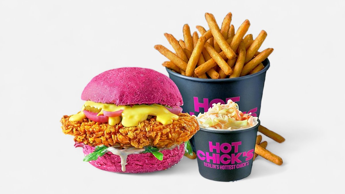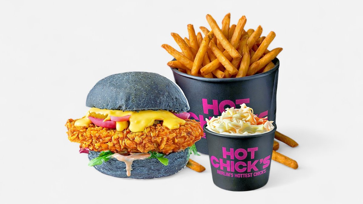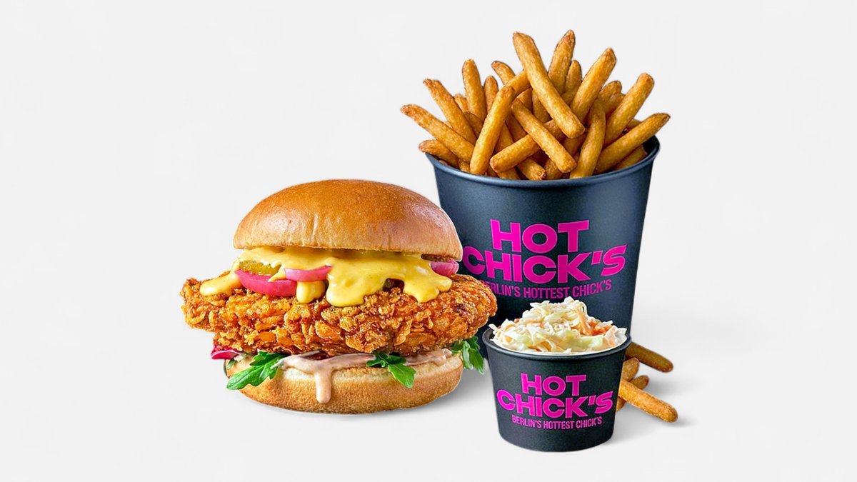Crispy Chicken Burger mit Pommes frites und Coleslaw
