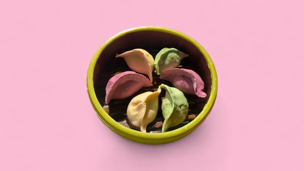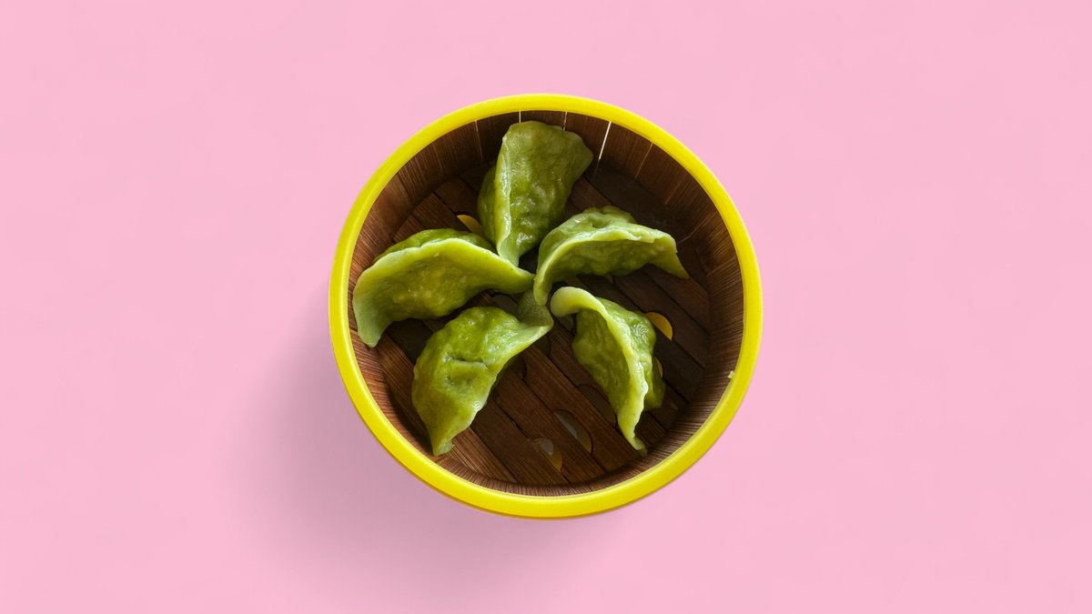homemade dumplings (8 pcs.) with pork filling, pak choi and leek