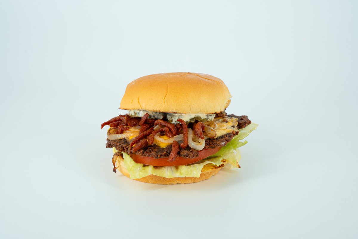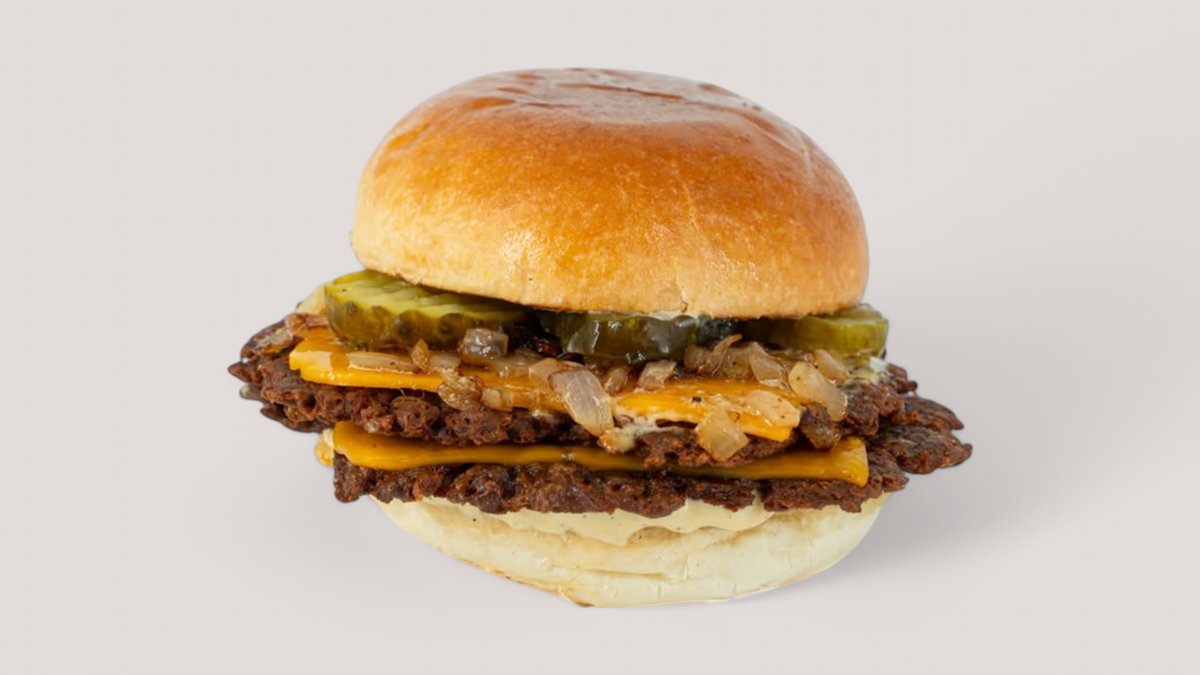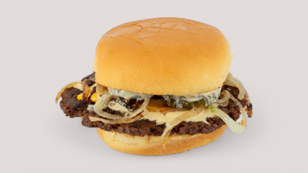 Perfekte Kombination aus Burger & Sandwich: Toastbrot, Beef-Patty, Spezialsoße, Bacon-Zwiebeln, eingelegte Gurken & American Cheese.