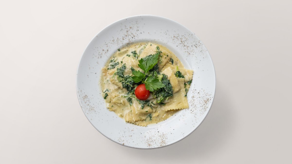 mit Spinat, Sahne, weiĂźen Zwiebeln und Knoblauch