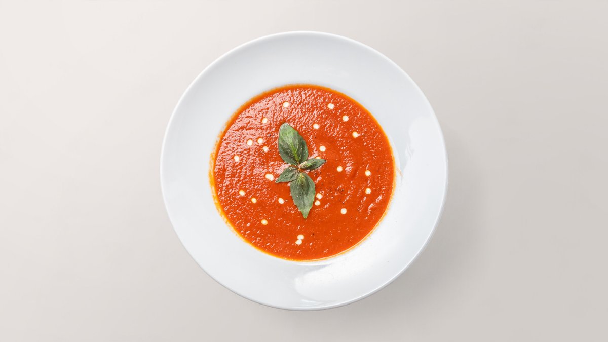 mit italienischer Tomatensuppe, Sahne und Basilikum