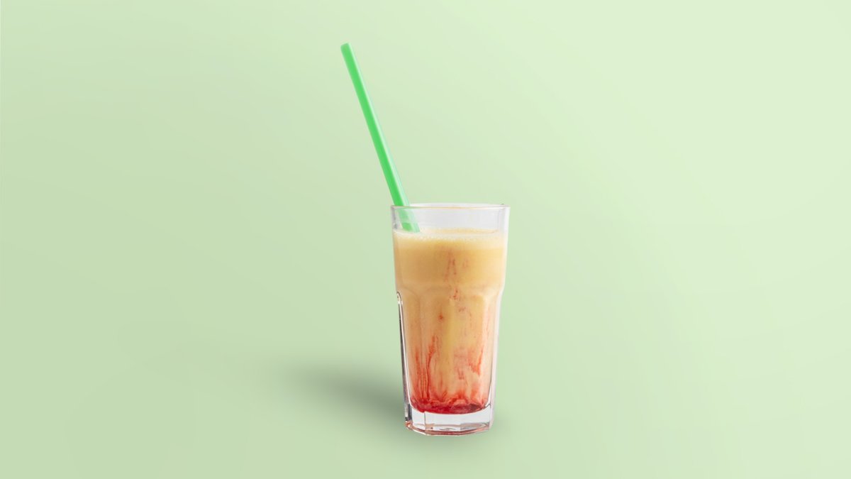 Indisches Joghurtgetränk mit pürierter Mango, süß und erfrischend.