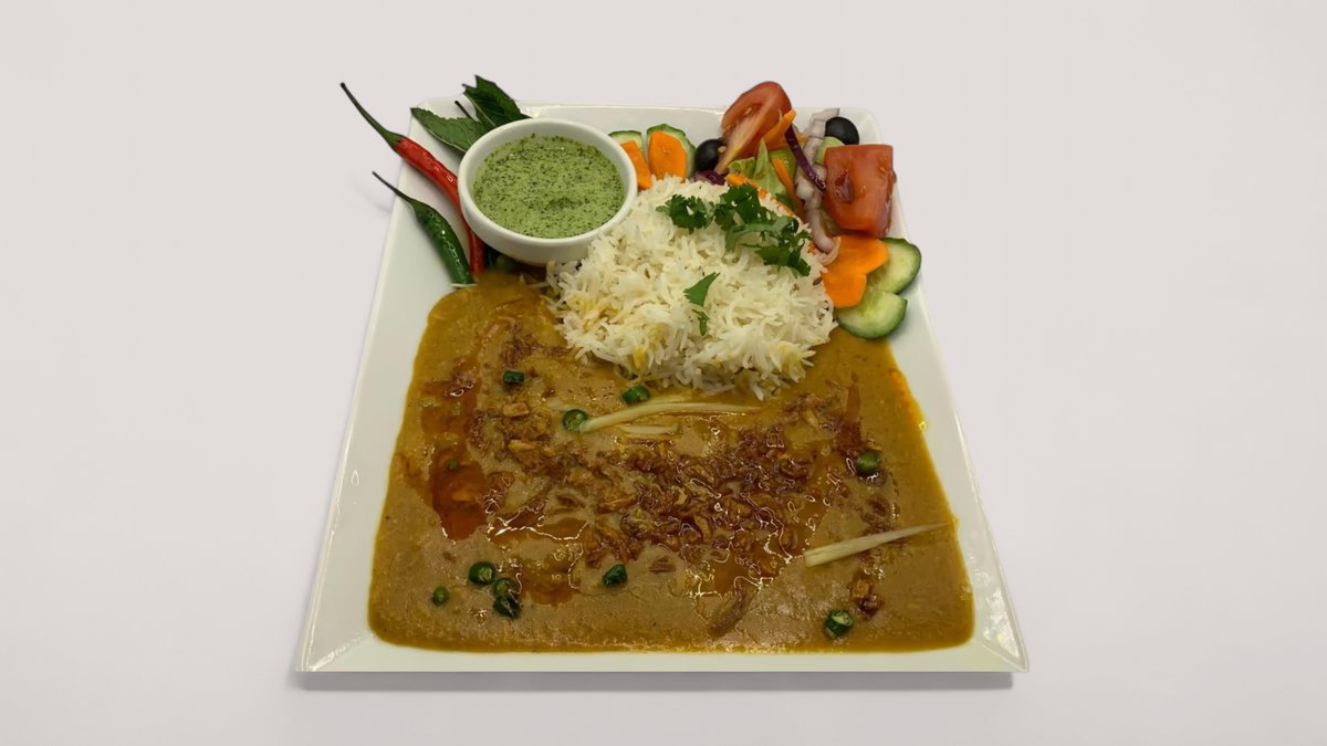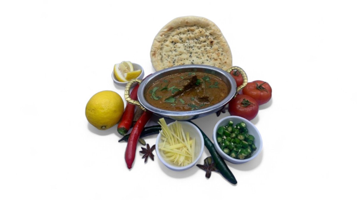 Köstliche Pakistanisches Schmorgericht,aus Langsam gekochtem Rindfleisch mit Naan Brot Serviert