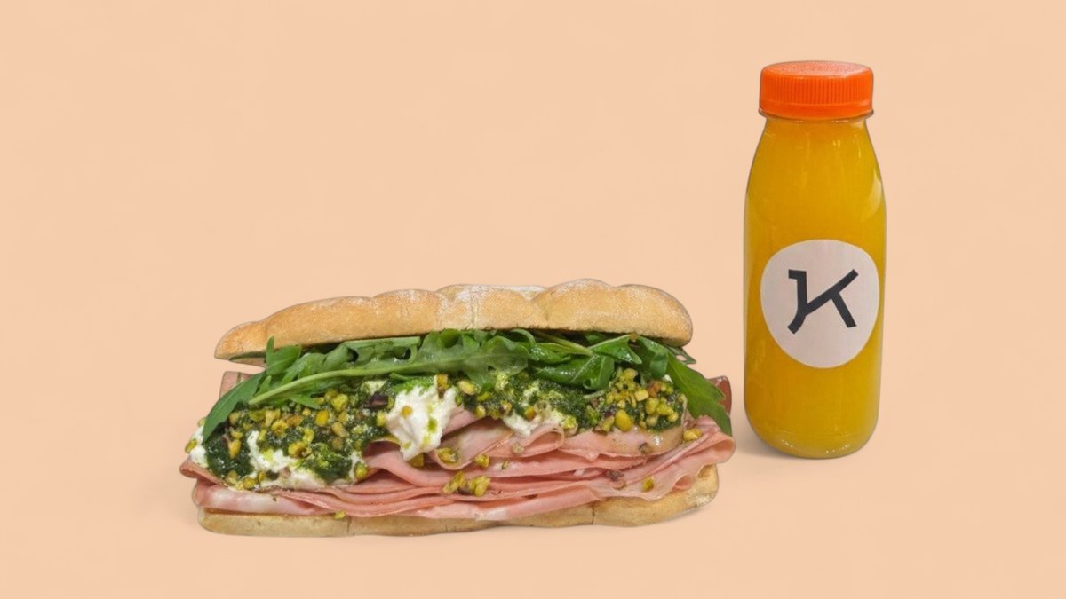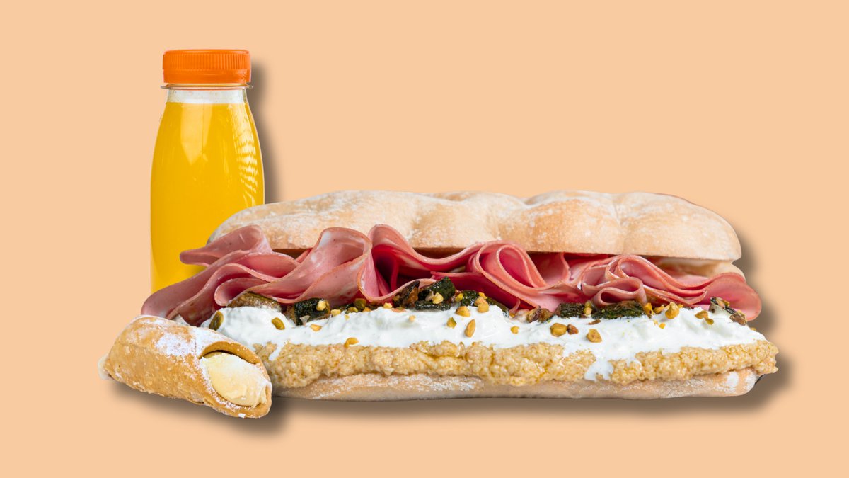 mit Nero-Sandwich, frischem Orangensaft und Cannoli Siciliani-Pistazien