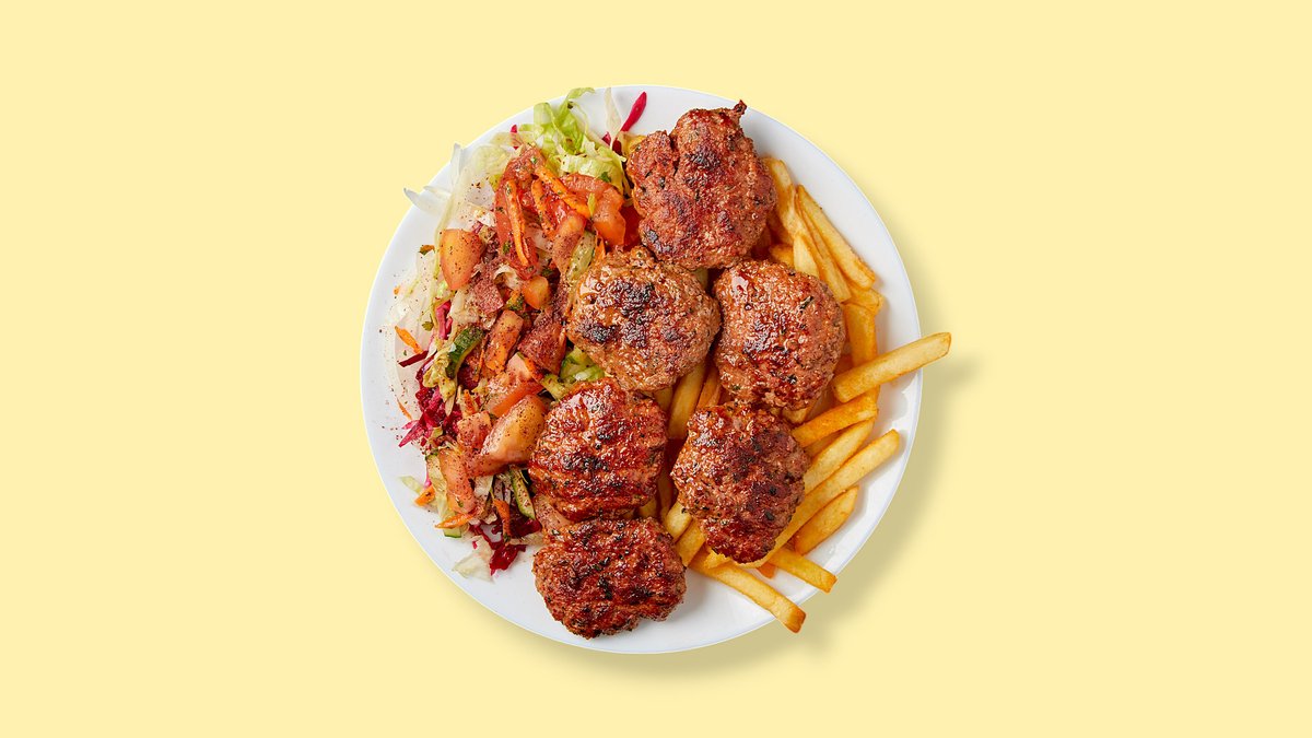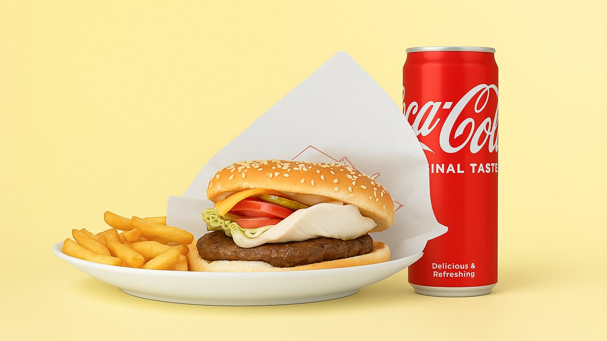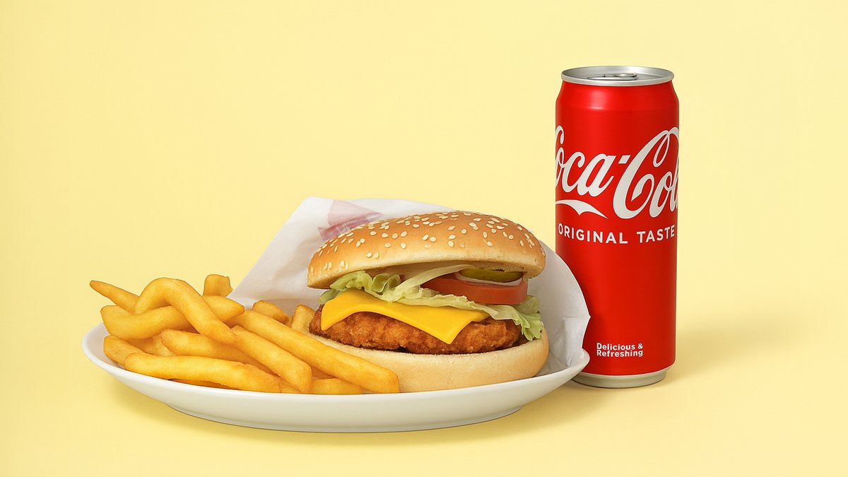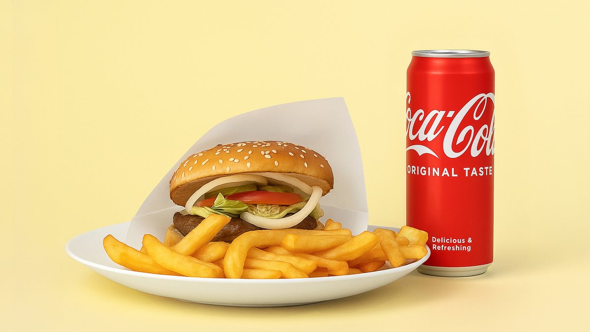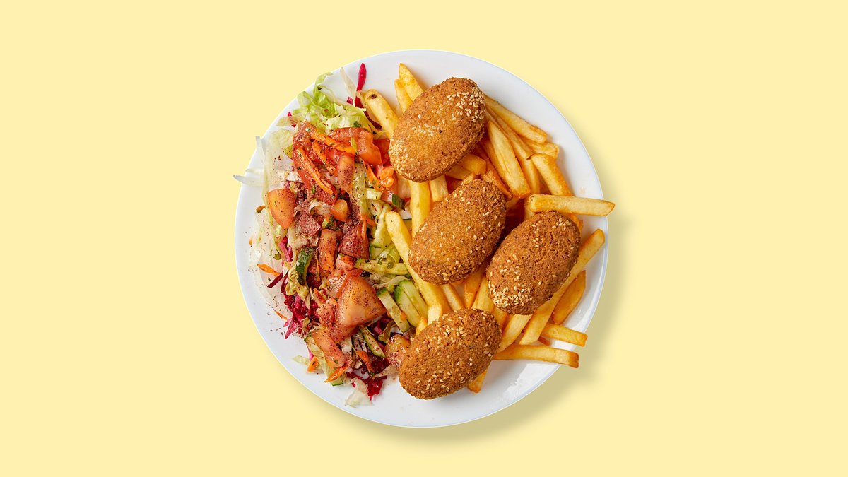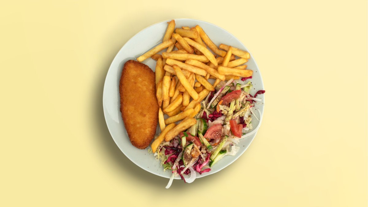 alle Menüs werden mit Pommes frites und einem alkoholfreien Getränk 0,33 l deiner Wahl serviert