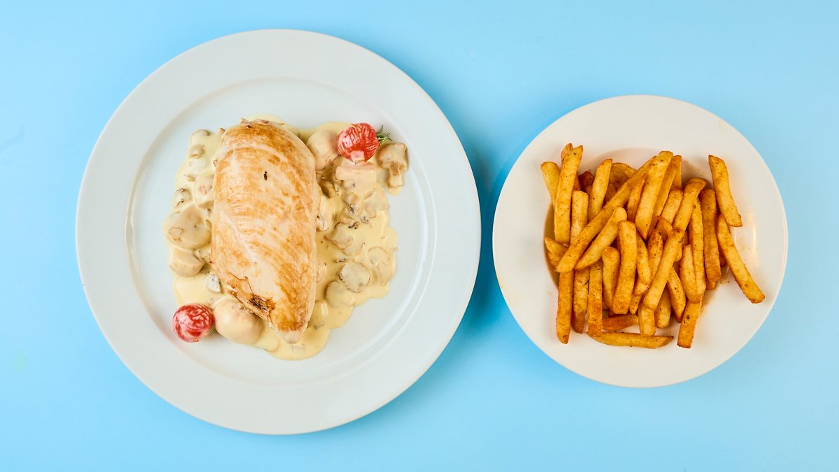 zartes Hähnchenschnitzel vom Grill mit Rosmarin und cremiger Champignonsoße
